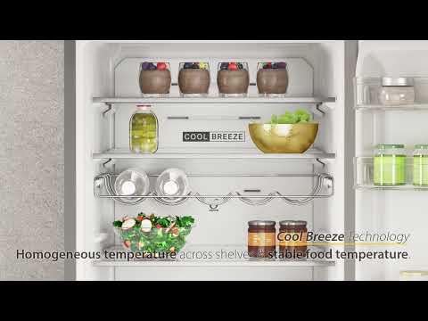Внутреннее пространство организовано максимально удобно: регулируемые полки из закалённого стекла выдерживают значительные нагрузки, вместительные дверные балконы подходят для бутылок и упаковок разного размера, а отдельная зона Fresh Box Plus создаёт оптимальные условия для хранения овощей и фруктов. Мягкая LED-подсветка обеспечивает хорошую видимость содержимого при низком энергопотреблении.